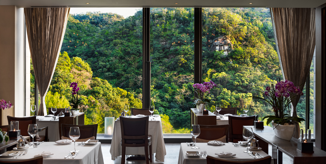 北投麗禧溫泉酒店歐陸餐廳的戶外景色宜人,為餐廳帶來視野寬闊的用餐體驗。