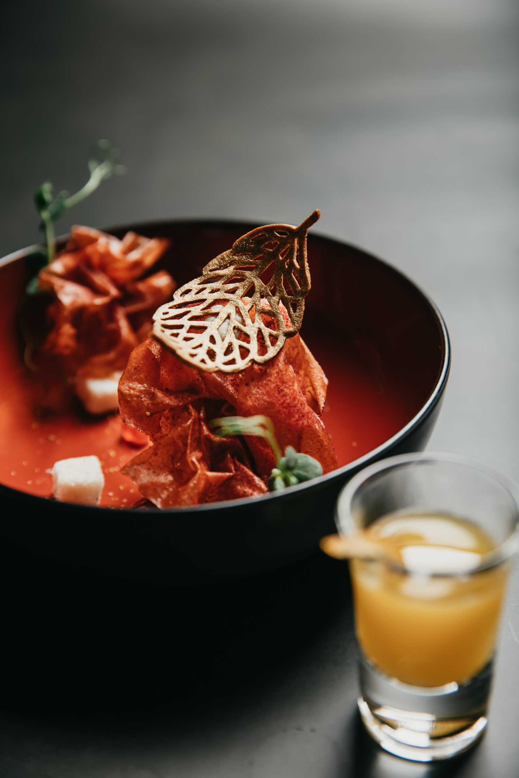 熱前菜「鱸魚慕斯,虱目魚,夏隆醬汁」。(圖片提供北投麗禧溫泉酒店)