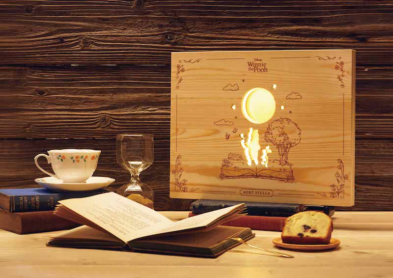 Aunt Stella詩特莉不僅為手工餅乾專家,更持續於發源地日本經營生活家居事業,進而奠定品牌優勢與創新精神,近年來持續開發具備「家飾品」用途的質感禮盒。全新小熊維尼系列首度推出獨家開發鏤空夜燈款「維尼的月光旅程」禮盒,只要將上蓋連接USB電源即可點亮造型夜燈,讓維尼與小豬一同走出童話故事書,望向溫暖的月光伴你入眠、盡享甜蜜夢境;湛藍夜空袖套則以繁星劃成星軌,點點灑落照耀著維尼與跳跳虎的歡樂相處時光。此款禮盒共限量1,500份,除了可做為高端質感中秋贈禮,更是小熊維尼粉絲不可錯過的絕美收藏品!
