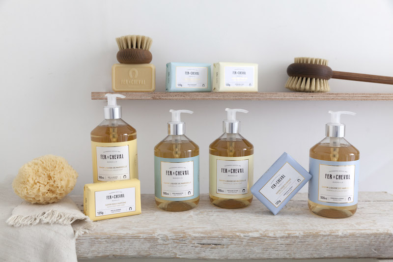來自南法的百年經典品牌—Fer à Cheval法拉夏,在居家清潔用品上無論在法國、台灣直至全世界,已深受時尚主婦們的喜愛,因馬賽皂製成的各種清潔用品,如黑皂液、馬賽皂除垢清潔噴霧…等等,成分溫和皆具有清潔力並兼具保養成分,清潔時不傷手和肌膚。此外,Fer à Cheval法拉夏更將清潔兼具保養概念及有效成分運用在身體清潔上,將古法製造的白色馬賽皂與法國當地精油調香師所調配的植物香氛結合,推出「香氛馬賽皂」系列,馬賽皂及馬賽皂液都讓人愛不釋手!