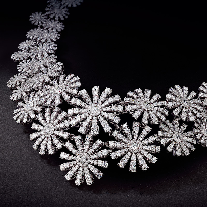 Margherita系列的靈感,來自於1900年代初期的義大利王后瑪格麗塔(Margherita of Savoy),一位迷人且具時尚品味的女性,她以細緻的美貌、皇室的風範和堅決果斷的性格而聞名並備受讚頌:這位義大利最受愛戴的女王激發了Enrico Grassi Damiani的創意,為她呈獻一枚珍貴的花卉珠寶。