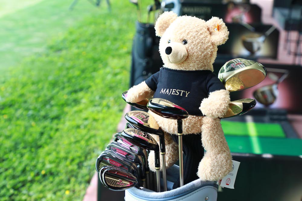 為了歡慶今年度全新Royale皇家系列上市,MAJESTY特別與德國經典金耳扣泰迪熊品牌Steiff聯名推出限量泰迪熊桿套,隨著首批購買整套女用球桿套贈送,送完為止,小禎表示:「一定要限量這麼殘酷嗎?」直呼自己每一隻都想要帶回家珍藏,迫不及待要攜手Royale開啟下一段高球旅程。