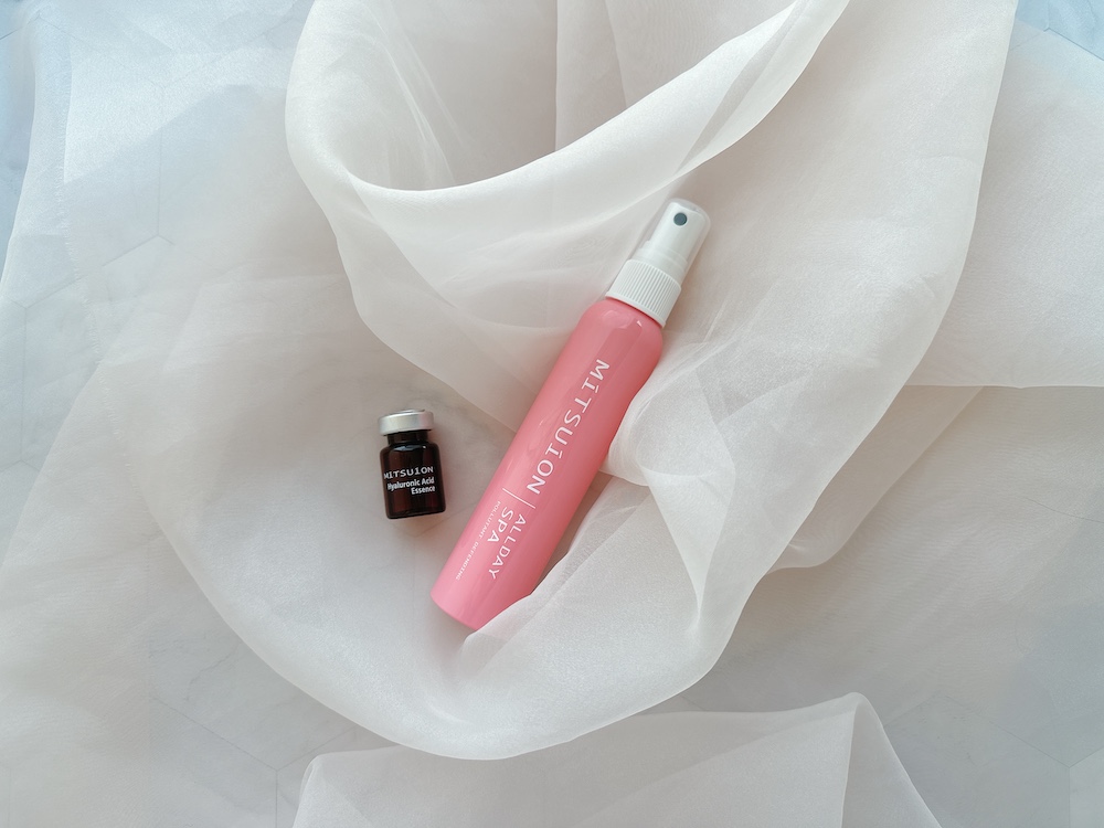 「秘之湧天堂之泉」使用前須自行DIY將「玻尿酸精華素 4g」倒入秘之湧水美媒離子導入劑裡,輕輕搖晃至融合後即可開始使用,讓玻尿酸精華素保持在最新鮮的狀態,每噴一下都能接收到最完整的保養成分。而保濕成分最廣為人知的就是「多重玻尿酸」,保濕性及抱水性極佳。「玻尿酸精華素 4g」當中另添加了天然防護罩「海藻萃取液」,在肌膚表面自然形成保濕鎖水薄膜,達到柔潤及保護皮膚的作用,避免受到空氣污染、紫外線曝曬或清潔之傷害,加速修復,使肌膚柔嫩、緊實和平滑。