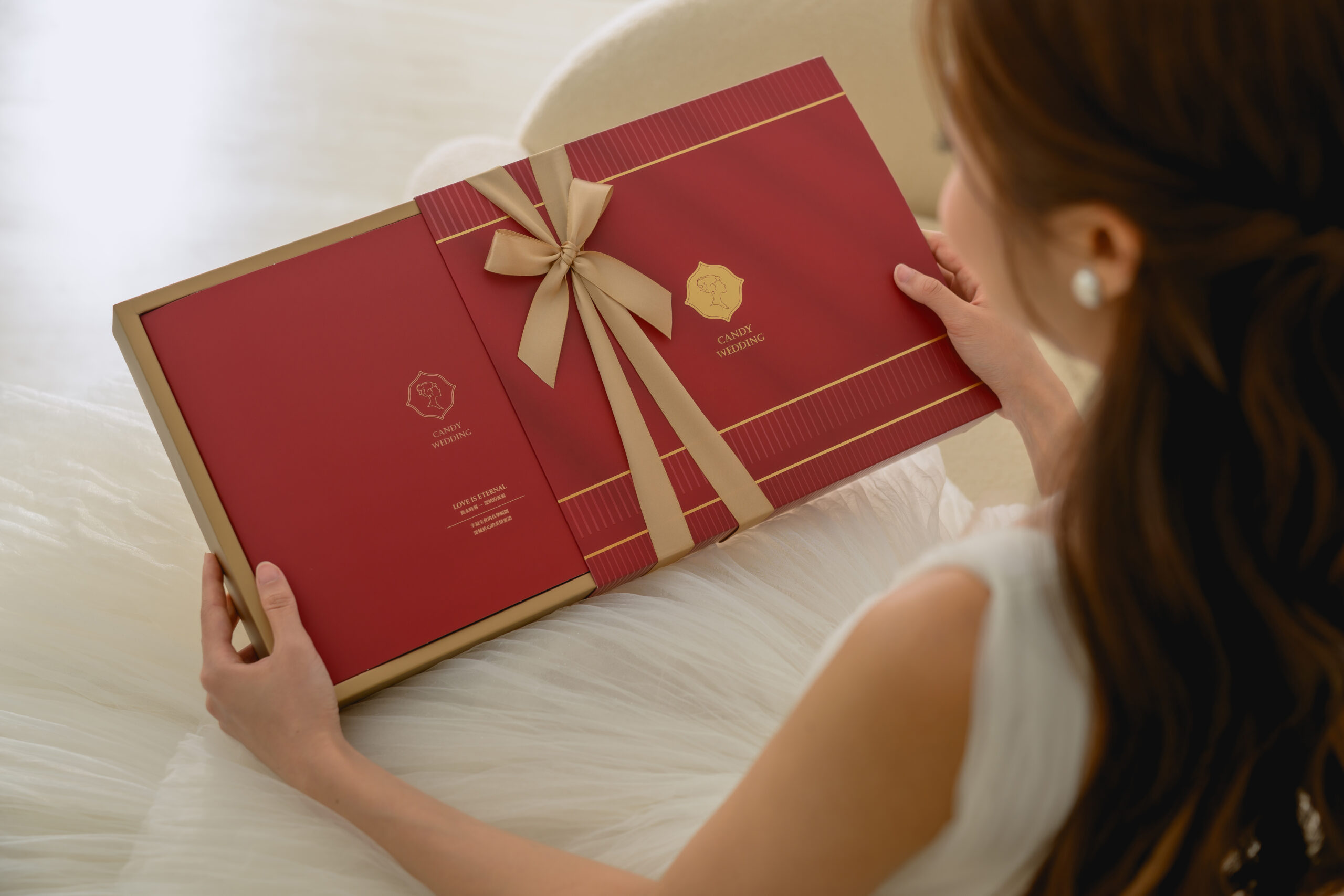 Candy Wedding推出的這款「雋永時刻 LOVE IS ETERNAL.」禮盒,醒目的紅飽含著最深情的祝福寓意,禮盒設計靈感來自於捕抓戀人間生活中的吉光片羽,以濃情的玫瑰鮮紅色營造光影的層次韻味,別具典雅雋永質感的一款禮盒。