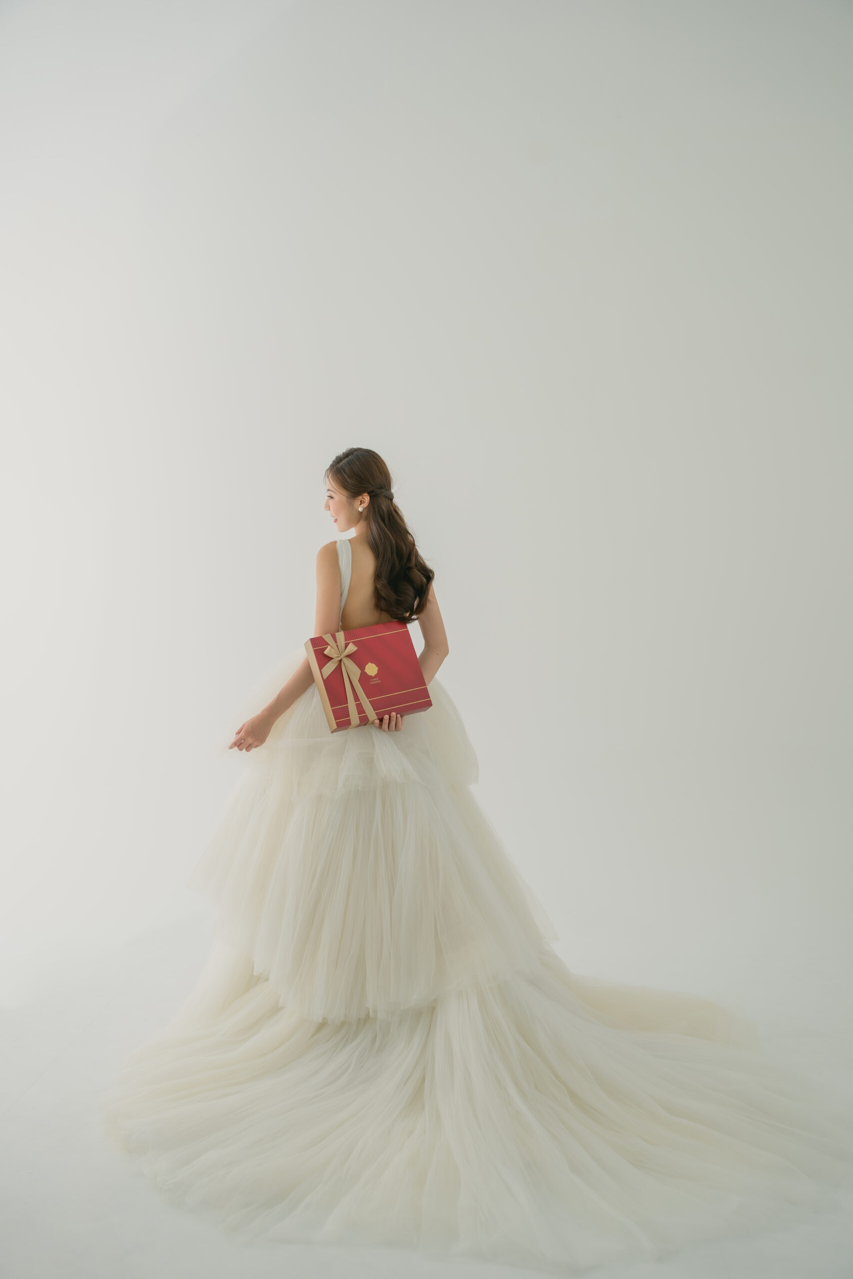 雅致的深V領口簡約款白紗,裙身以層層疊疊堆砌出豐富的視覺效果,低調卻十足的聚集焦點。